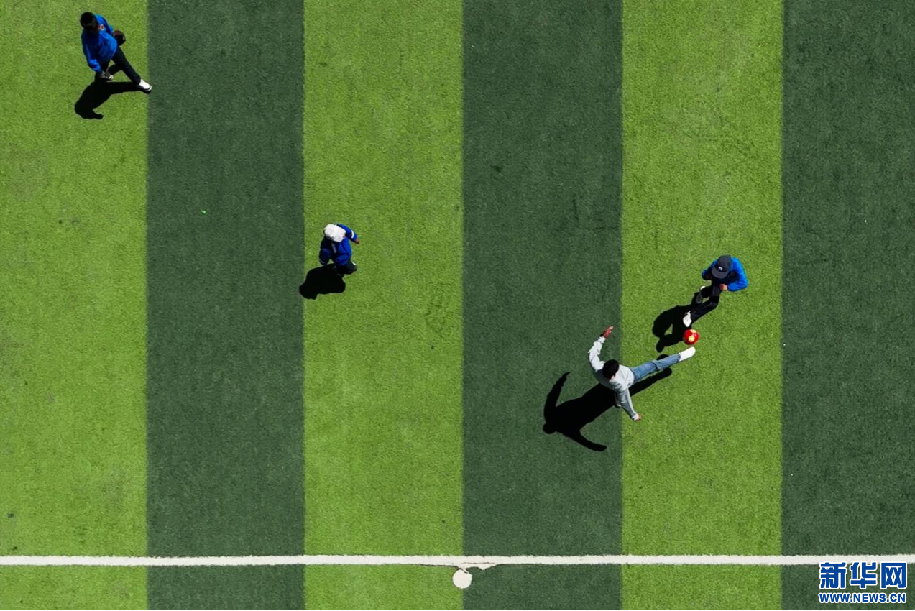 5月15日,西藏定日縣扎西宗鄉(xiāng)完全小學學生在上體育課(無人機照片)。新華網(wǎng) 旦增努布 攝