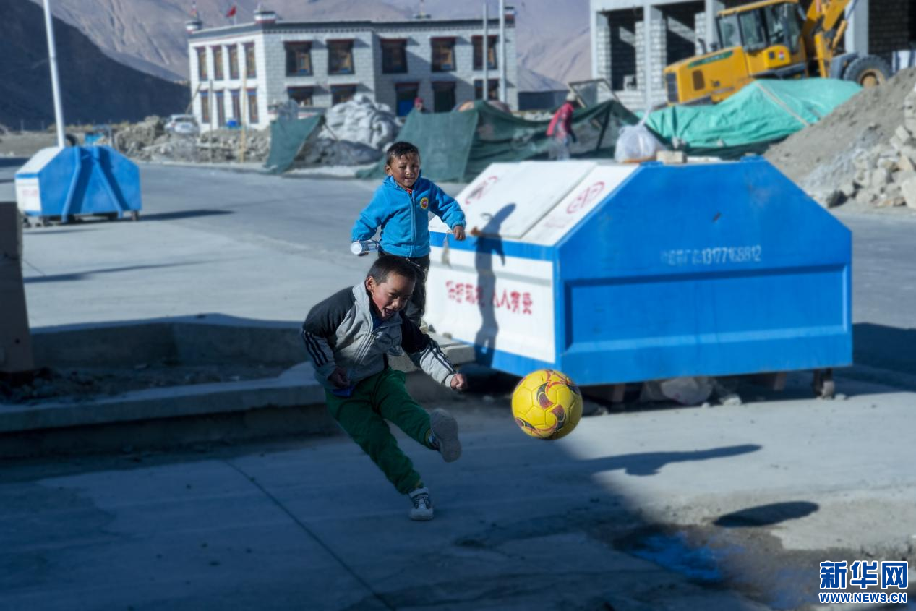 5月13日,在西藏定日縣扎西宗鄉(xiāng)巴松村,學生放學后踢球。新華網(wǎng) 旦增努布 攝