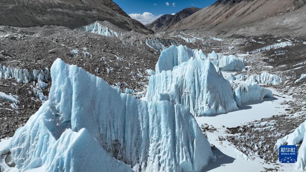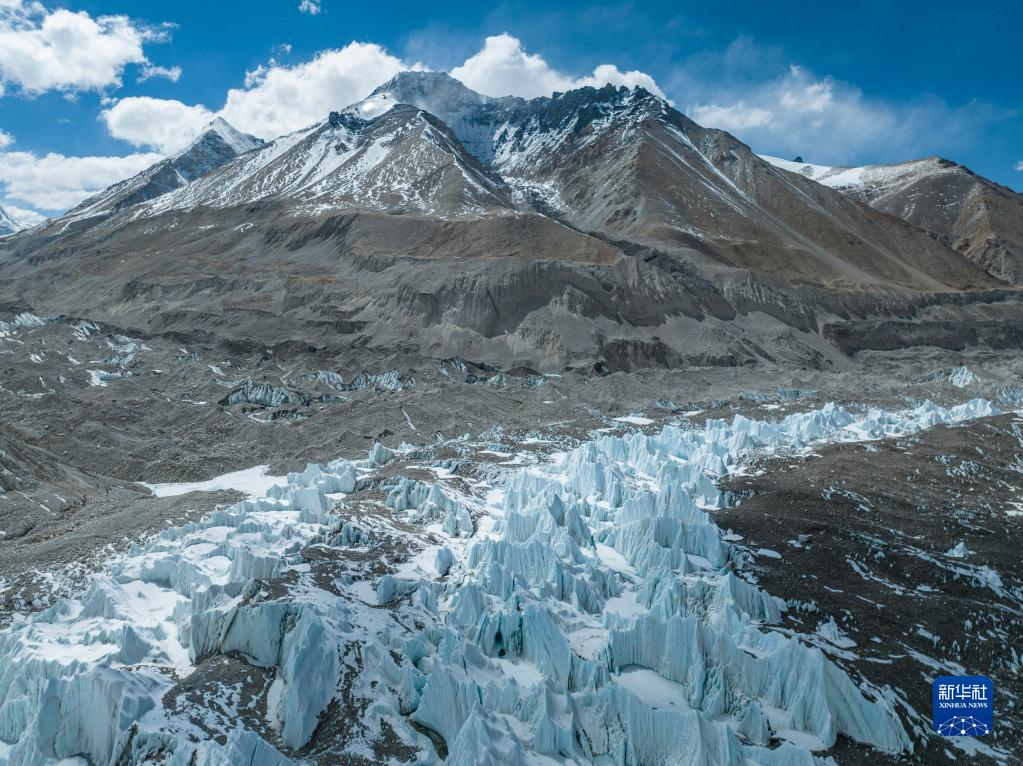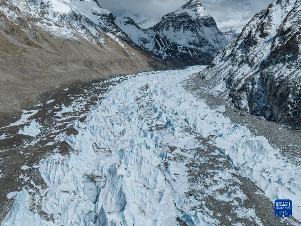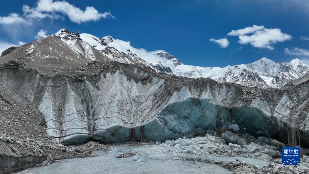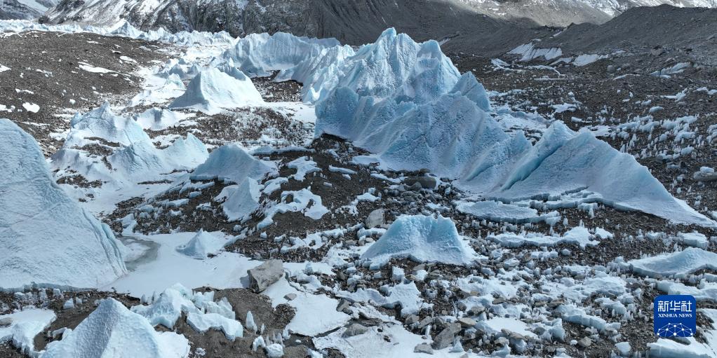 這是珠峰腳下的中絨布冰川(5月15日攝,無人機(jī)照片)。新華社記者 孫非 攝