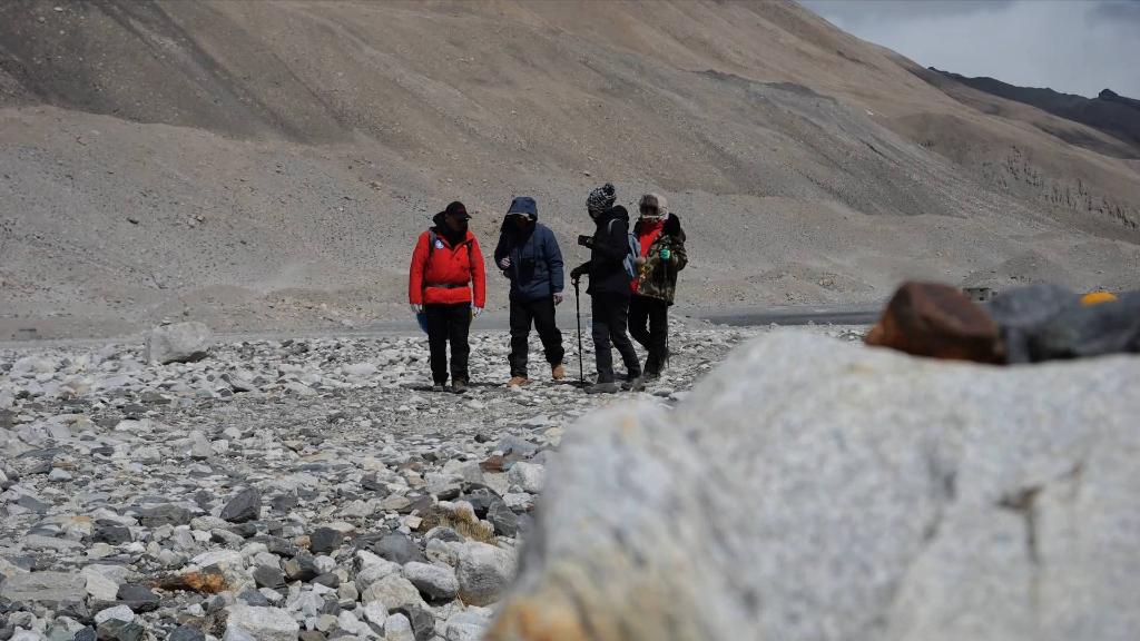 在海拔5200米的登山大本營附近的絨布河進行完檢測后,科考人員一行計劃前往約三公里外的中絨布冰川末端的冰湖,采集冰川融水樣本并檢測水質(zhì)。