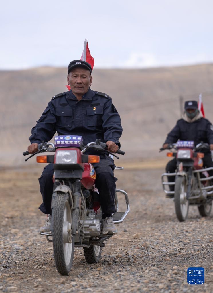 車(chē)輪滾滾,黃沙漫漫,一隊(duì)摩托車(chē)風(fēng)馳電掣般駛來(lái)……這里是平均海拔超過(guò)5000米的西藏日喀則市薩嘎縣昌果鄉(xiāng),雖然已是初夏時(shí)節(jié),但依然寒風(fēng)刺骨。50歲的昌果護(hù)邊聯(lián)防隊(duì)隊(duì)長(zhǎng)石角帶領(lǐng)18名隊(duì)員,騎著摩托車(chē)在邊境線巡邏。