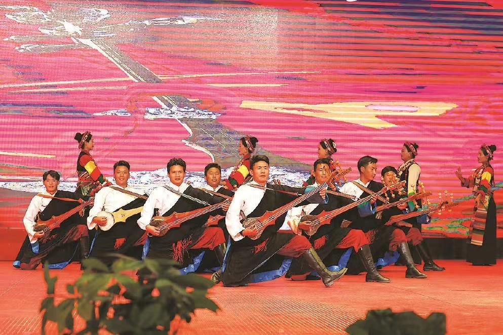 5日,由上海市援藏干部人才聯(lián)絡(luò)組拉孜小組、西藏日喀則市拉孜縣文化和旅游局主辦的“遇見|雅江情濱江意·滬藏文化交流”演出,走進(jìn)上海楊浦文化新地標(biāo)“YOUNG劇場(chǎng)”,悠揚(yáng)的扎念琴聲、時(shí)快時(shí)慢的“踢踏”舞聲、傳統(tǒng)藏族曲調(diào)和現(xiàn)場(chǎng)觀眾的歡笑聲、鼓掌聲,為初夏的繽紛申城再添一抹亮色。