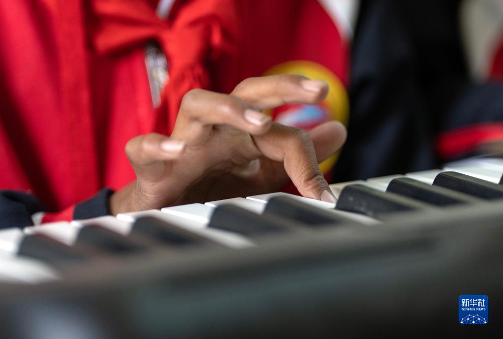 6月5日,扎西宗鄉(xiāng)完全小學(xué)的學(xué)生在上鋼琴課。新華社記者 邵澤東 攝