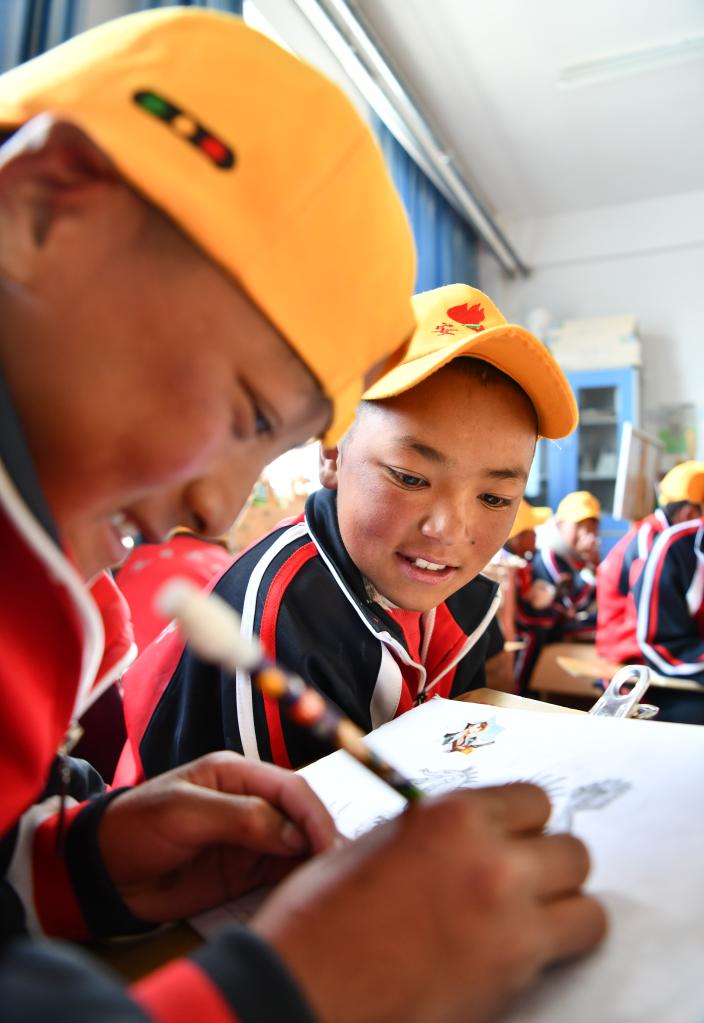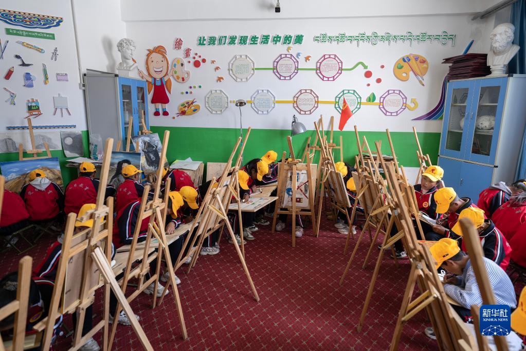 6月5日,扎西宗鄉(xiāng)完全小學(xué)的學(xué)生在上美術(shù)課。新華社記者 費茂華 攝