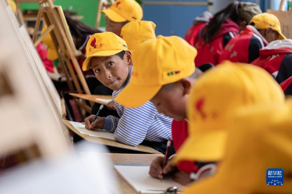 6月5日,阿旺尼曲(左一)在上美術(shù)課。新華社記者 費茂華 攝
