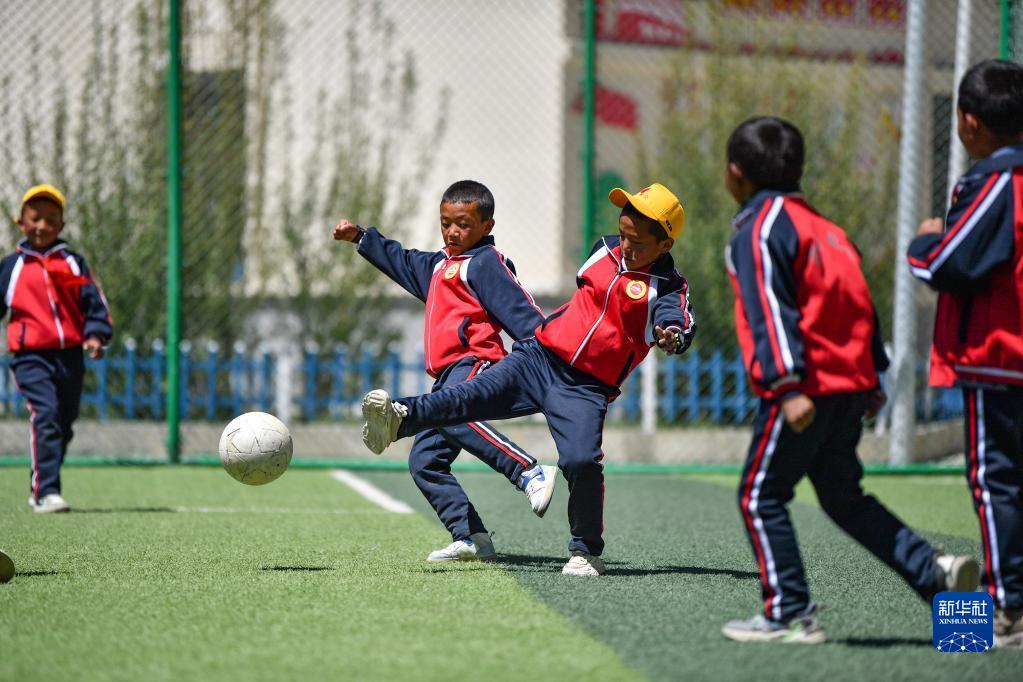 6月5日,扎西宗鄉(xiāng)完全小學(xué)的學(xué)生在上體育課。新華社記者 費茂華 攝