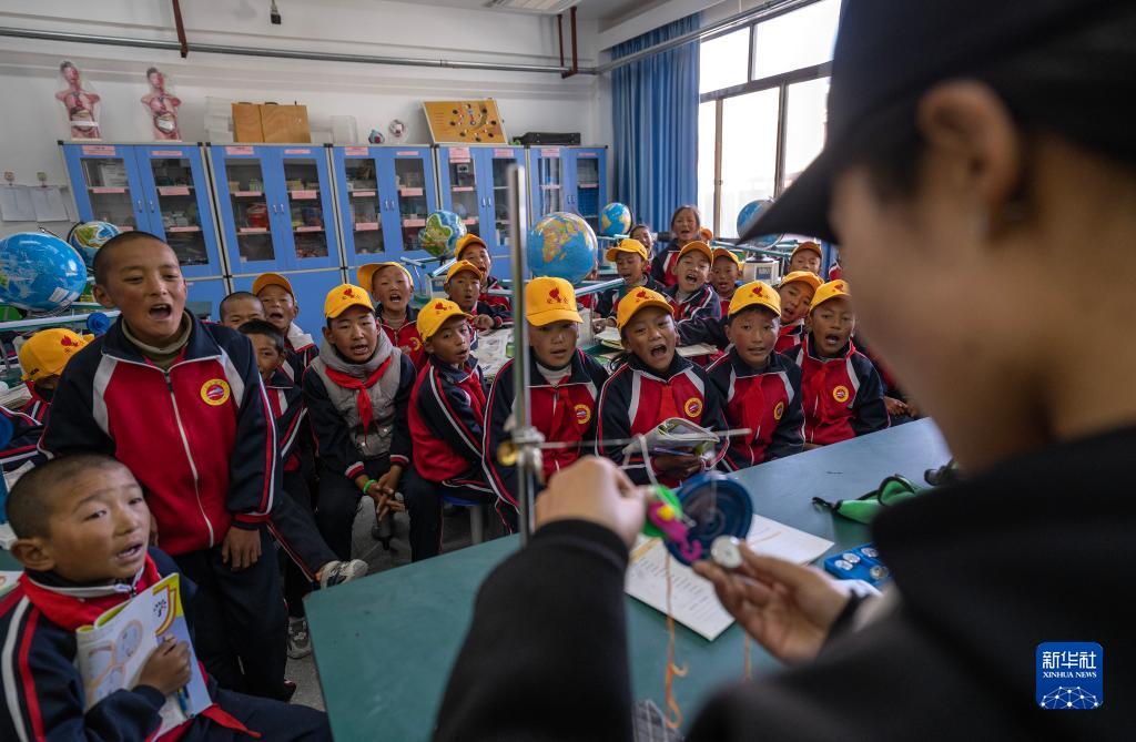 6月5日,扎西宗鄉(xiāng)完全小學(xué)的學(xué)生在上科學(xué)課。新華社記者 費茂華 攝