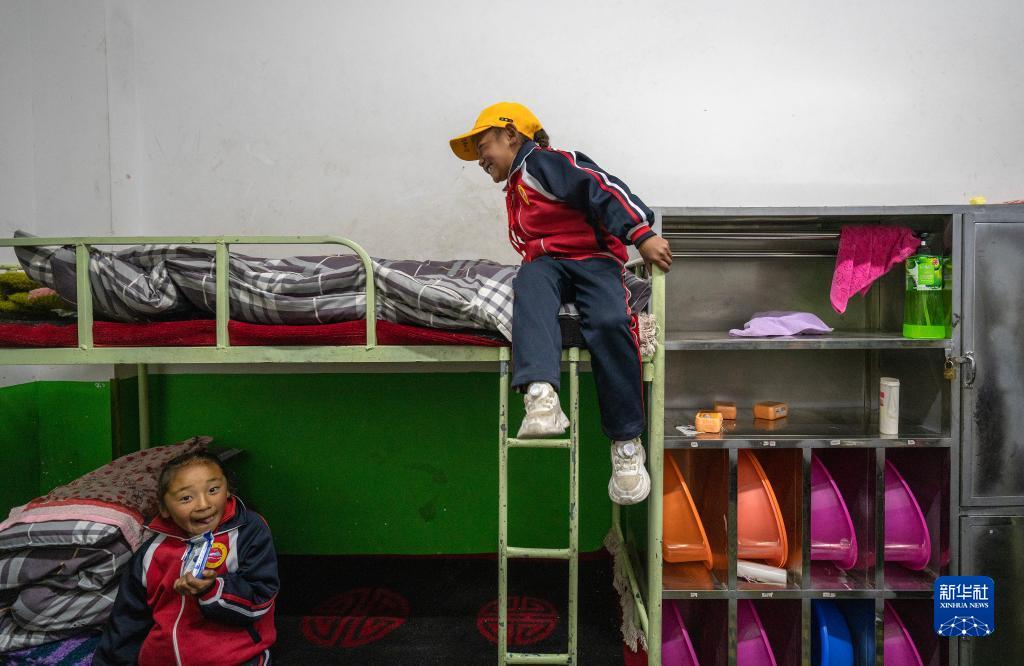 6月5日,扎西宗鄉(xiāng)完全小學(xué)的學(xué)生在宿舍準備就寢。新華社記者 費茂華 攝