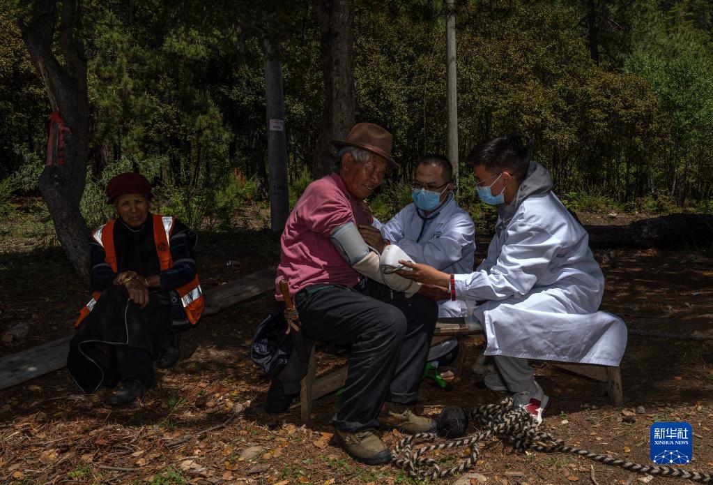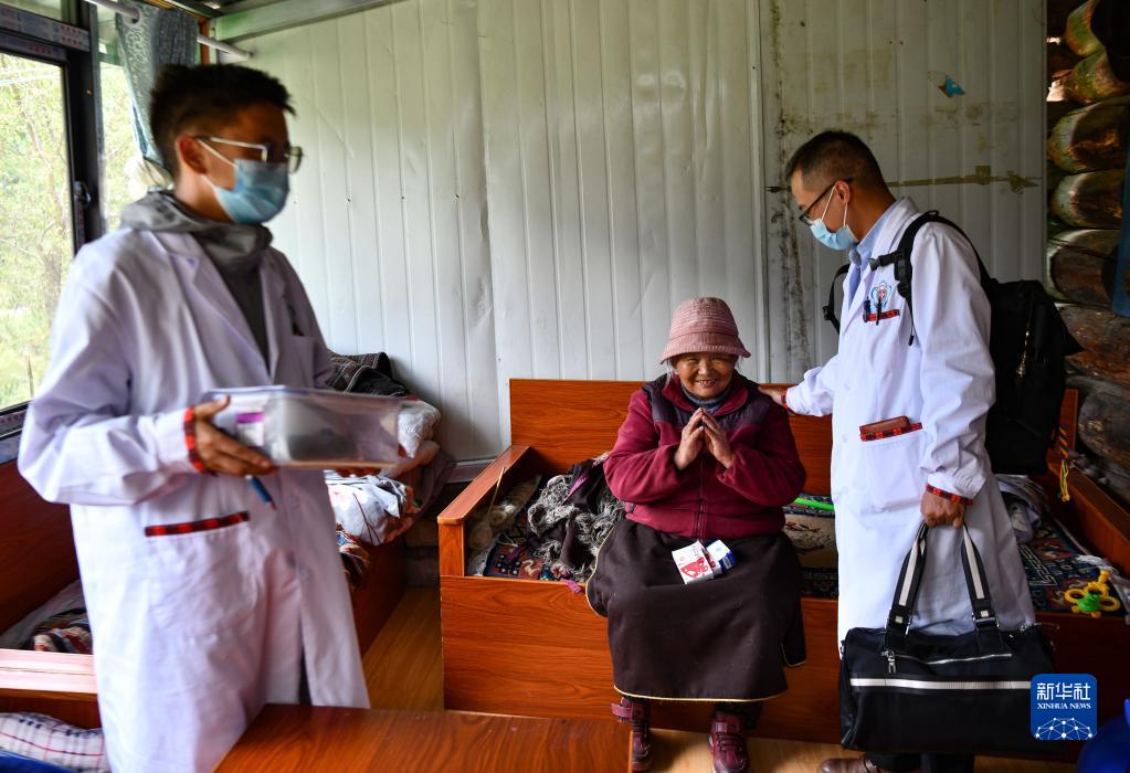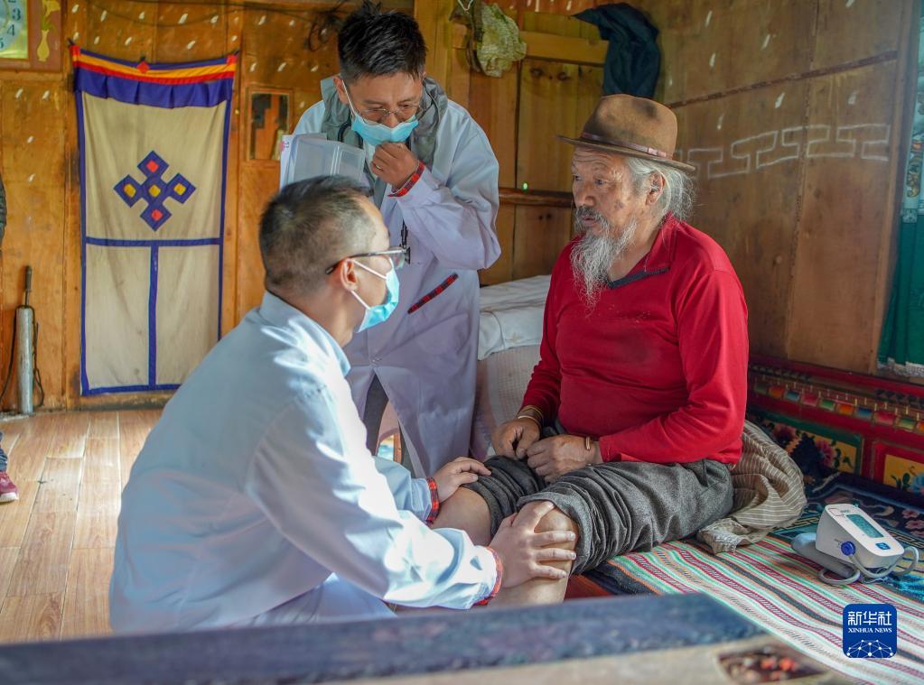 6月12日,王振疆(右)為吞不絨村89歲的村民娘姑進行檢查。新華社記者 費茂華 攝