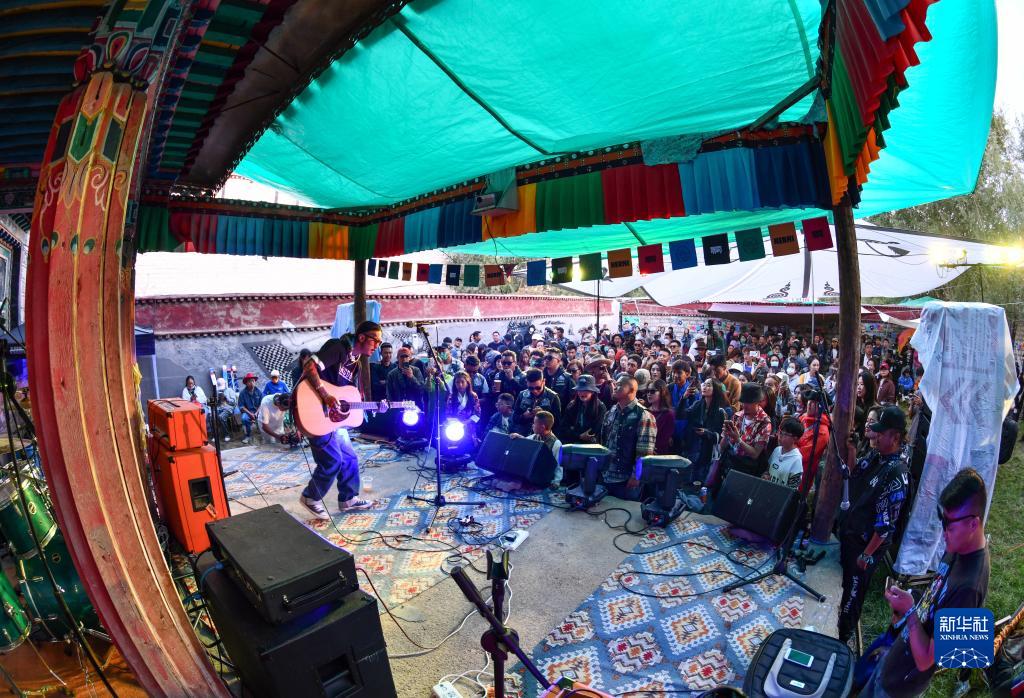 拉薩的年輕人在參加現(xiàn)場(chǎng)音樂(lè)會(huì)(2022年7月29日攝)。新華社記者 晉美多吉 攝