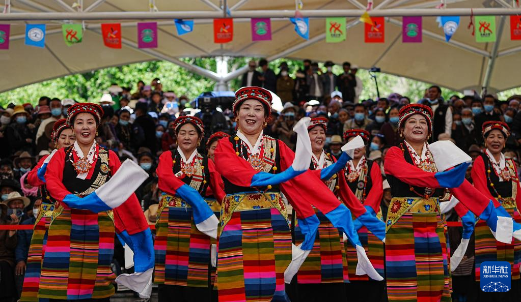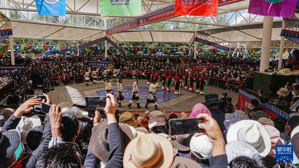 拉薩市首屆鍋莊舞大賽現(xiàn)場(6月22日攝)。新華社記者 晉美多吉 攝