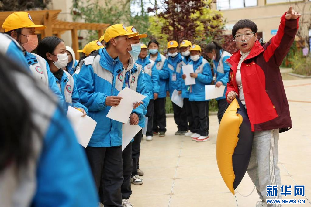 ??在西藏自治區(qū)那曲市色尼區(qū)第二中學(xué)(杭嘉中學(xué)),志愿者陳春玉正在引導(dǎo)學(xué)生排隊(duì)驗(yàn)光(6月22日攝)。新華社發(fā)(趙穎碩 攝)