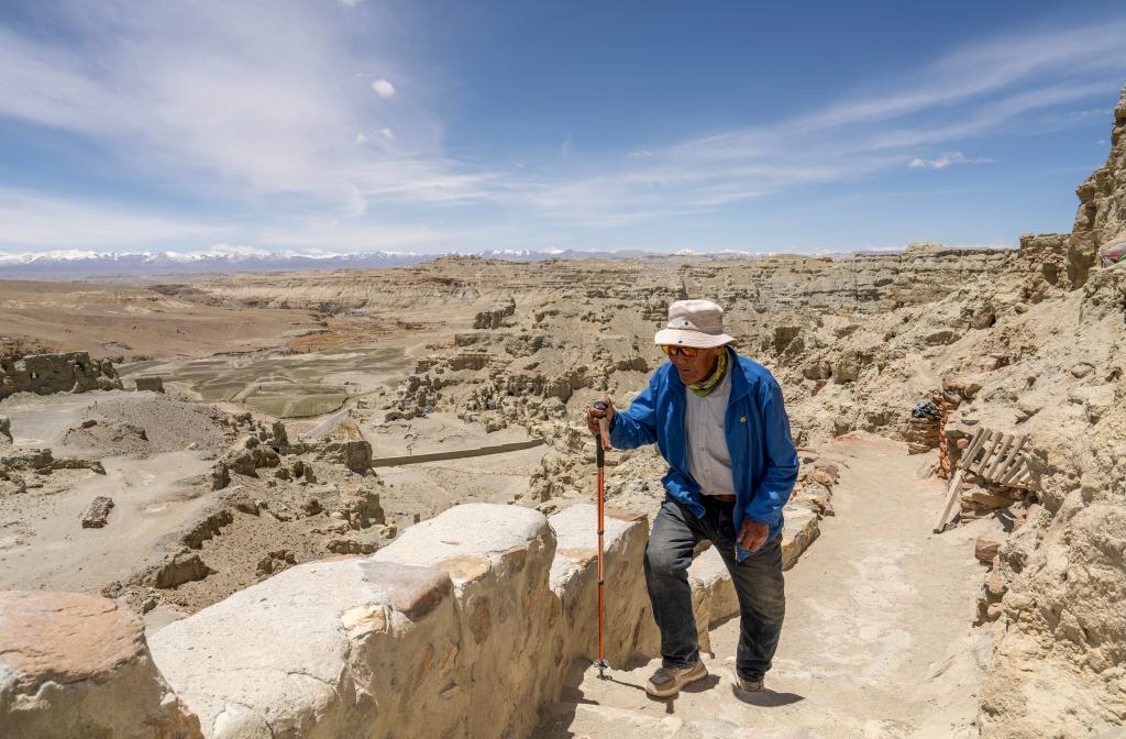 皮央和東嘎石窟遺址位于西藏自治區(qū)阿里地區(qū)札達縣境內(nèi)的皮央村、東嘎村,由皮央石窟群和東嘎扎西曲林寺遺址組成。由于兩村距離很近,遺址規(guī)模巨大,故命名為皮央和東嘎石窟遺址。仁增旺扎是一位75歲的老人,他從2002年開始被聘為當?shù)氐奈奈锉Wo管理員,從那時起就一直守護著皮央和東嘎石窟遺址,至今已經(jīng)有20多年。