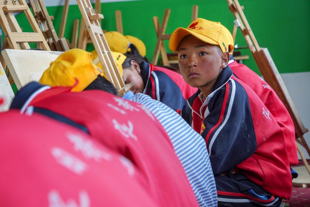 扎西宗鄉(xiāng)完全小學(xué)的學(xué)生在上美術(shù)課(6月5日攝)。