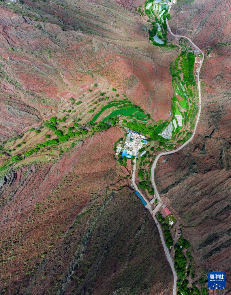 6月22日在國(guó)道317線昌都段類烏齊縣附近拍攝的河谷景觀(無(wú)人機(jī)照片)。新華社記者 姜帆 攝