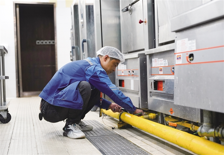 在香格里拉酒店,拉薩暖心公司工作人員對(duì)酒店的鍋爐房、廚房等地開(kāi)展了燃?xì)獍踩[患排查。拉薩暖心公司客戶服務(wù)部抄表中心主任張雁龍手拿檢測(cè)儀器,對(duì)鍋爐房、廚房?jī)?nèi)的燃?xì)夤艿浪薪涌凇⑷細(xì)庠罹?、軟管、燃?xì)鈭?bào)警器、安全閥等全部進(jìn)行了檢查,并對(duì)每一項(xiàng)檢查結(jié)果進(jìn)行了登記。