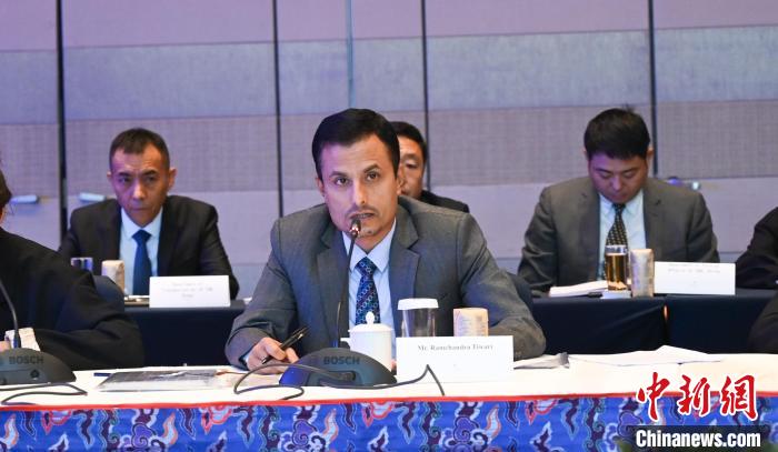 圖為尼方代表團團長、尼泊爾工業(yè)、商業(yè)和供應(yīng)部聯(lián)秘拉姆贊德拉·迪瓦日致辭。趙朗 攝