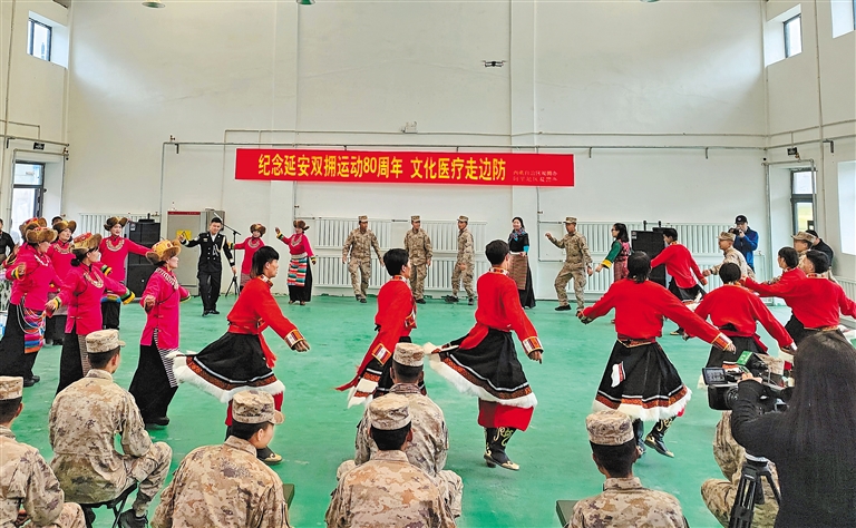 西藏軍區(qū)一線哨所、武警西藏總隊執(zhí)勤點位、空軍駐藏部隊雷達(dá)站……“文化醫(yī)療走邊防”系列活動慰問小分隊似一股清泉,滋潤著每一名邊防官兵的心田,凝聚起戍邊衛(wèi)國的磅礴力量。海拔5300多米的查果拉哨所一名戰(zhàn)士引用了《文成公主》實景劇里的一句話代表著所有邊防官兵的心聲:“‘走不到的地方是遠(yuǎn)方,回不去的地方是故鄉(xiāng)’,駐地政府和人民群眾的關(guān)心讓我們感到‘天下沒有遠(yuǎn)方,人間都是故鄉(xiāng)’。”