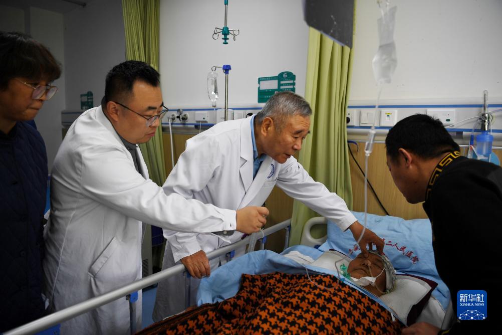 8月10日,中國(guó)科學(xué)院院士、首都醫(yī)科大學(xué)附屬北京天壇醫(yī)院神經(jīng)外科學(xué)中心主任醫(yī)師趙繼宗(后右一)在西藏自治區(qū)第二人民醫(yī)院為患者會(huì)診。新華社記者 張汝鋒 攝