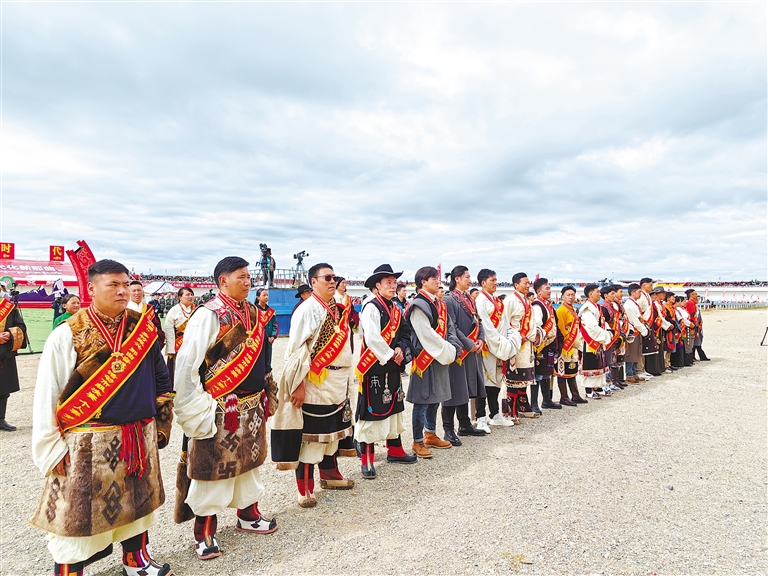 賽馬節(jié)期間,那曲市委、市政府對第二屆“鄉(xiāng)村振興 那曲奮進”活動市級決賽獲獎群眾代表進行隆重表彰。賽馬場內(nèi),男女老幼手捧哈達排起長隊,以草原人最熱烈喜慶的方式崇敬心中的“英雄”、歡送身邊的杰出勞動者。