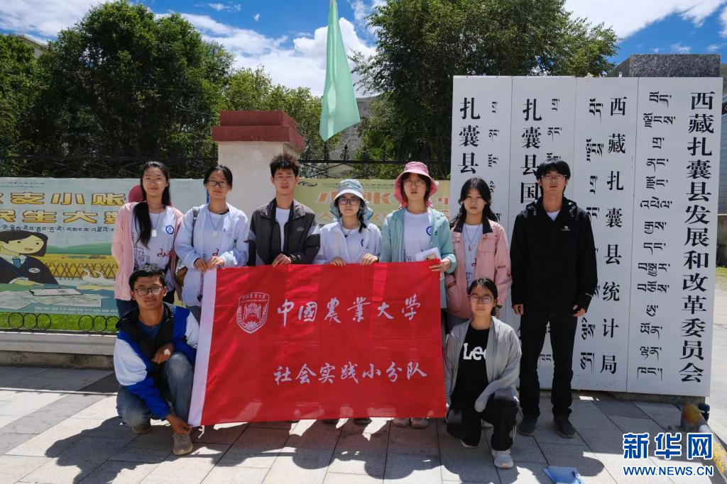 中國農(nóng)業(yè)大學(xué)峰云社人文科考隊(duì)隊(duì)員在西藏山南市扎囊縣合影留念。新華社發(fā)