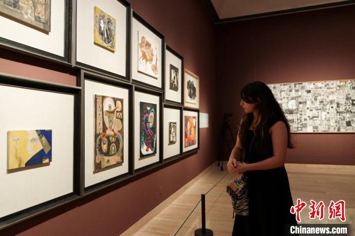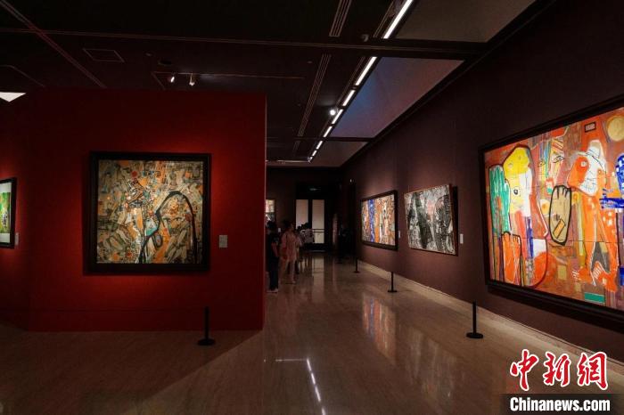 “藏色——巴瑪扎西畫展”亮相中國(guó)美術(shù)館,圖為展覽現(xiàn)場(chǎng)?!“椴匚幕﹫D
