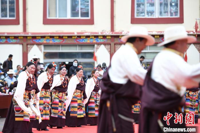 圖為昌都市民間鍋莊舞比賽現(xiàn)場。貢嘎來松 攝