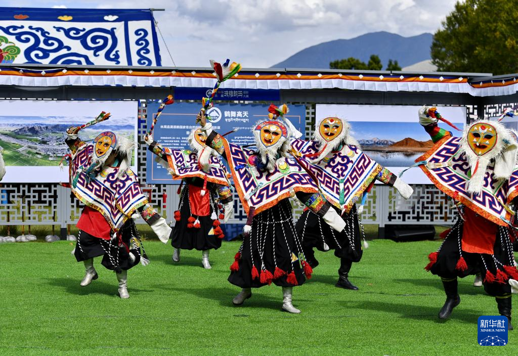 在拉薩市林周縣邊交林鄉(xiāng)當杰村,演員在第十六屆西藏珠穆朗瑪攝影大展開幕式上表演節(jié)目(9月8日攝)。新華社記者 張汝鋒 攝