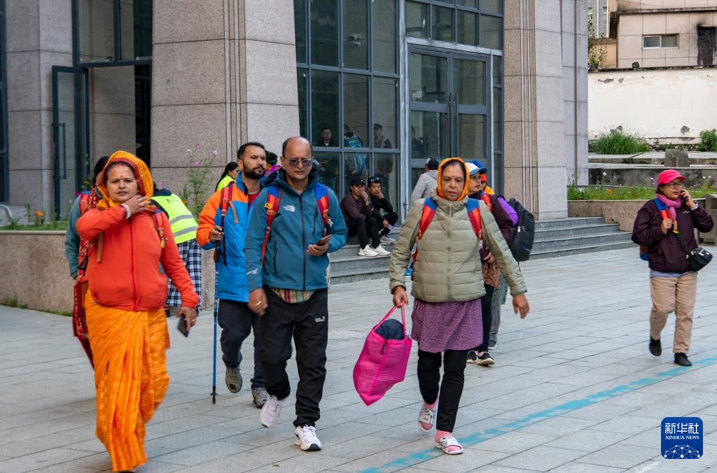 一隊外國游客通過吉隆口岸從我國出境到尼泊爾(9月11日攝)。新華社記者 姜帆 攝