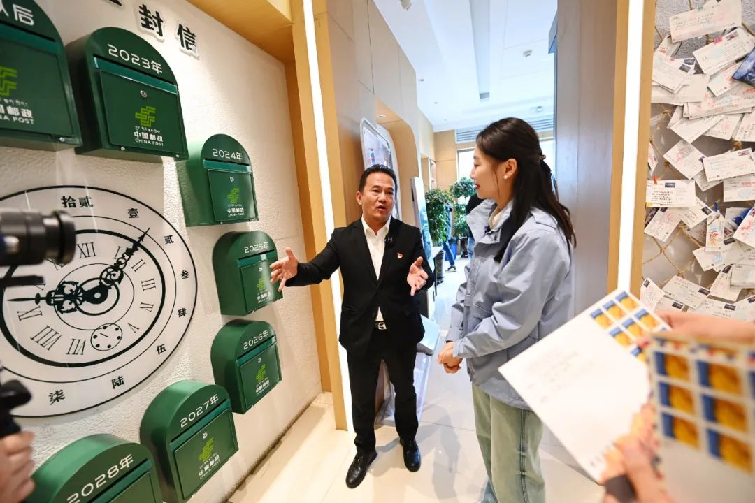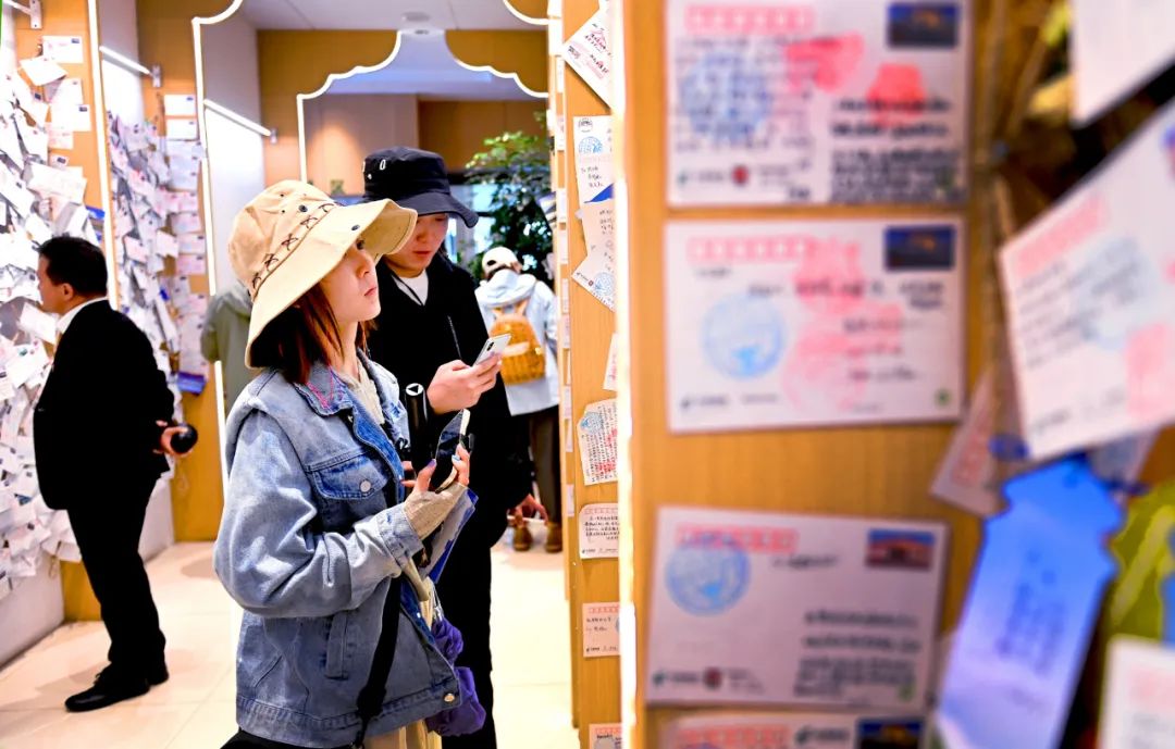 在時(shí)光郵局的留言墻上,掛滿了沒有寄出的明信片,每一張都包含著一個(gè)故事。郵局的工作人員會(huì)按照這些明信片約定的時(shí)間,將一封封穿越時(shí)空的信寄出。