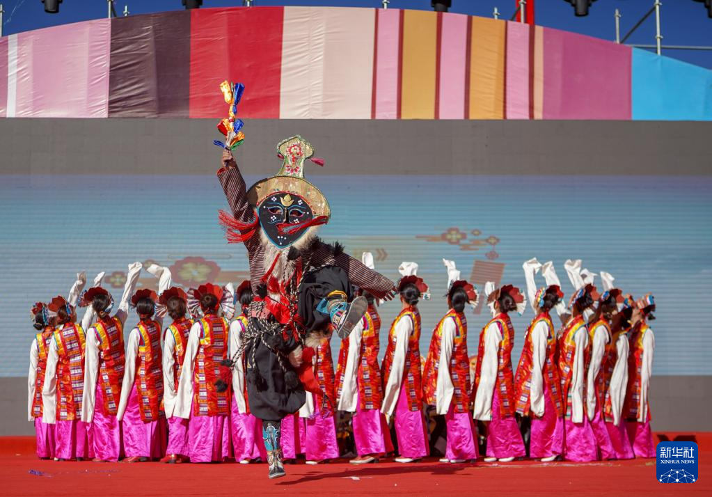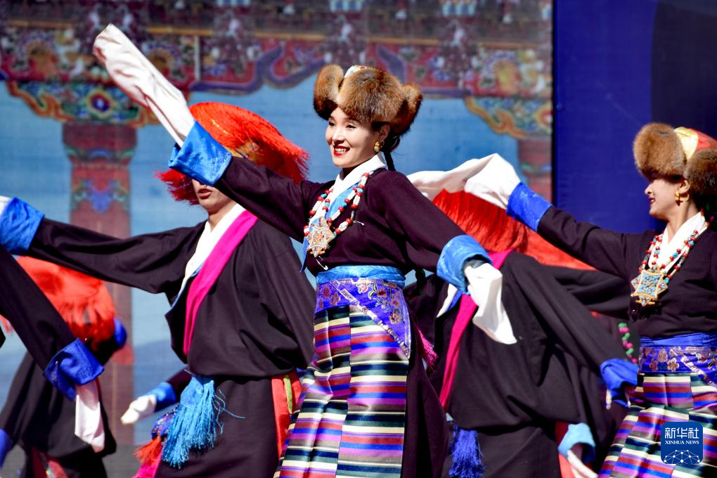 10月8日,演員在開幕式上表演藏戲。新華社記者 邵澤東 攝
