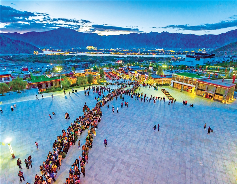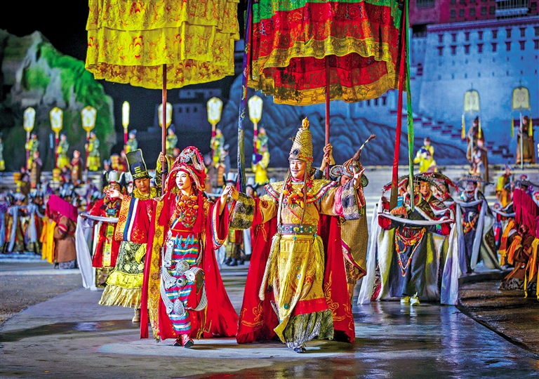 十年匠心成就雪域經(jīng)典。2023年,《文成公主》大型史詩(shī)劇已走到了第十一個(gè)演出季,累計(jì)演出場(chǎng)次超1800場(chǎng),演出及旅游配套累計(jì)接待觀眾超400萬(wàn)人次。游布達(dá)拉宮、逛八廓街、觀《文成公主》,已成為拉薩游的標(biāo)配。
