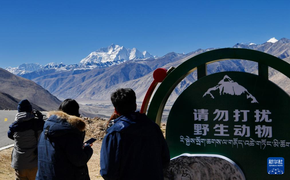深秋,西藏日喀則市定日縣天高氣爽,游客前來(lái)觀賞世界最高峰——珠穆朗瑪峰。