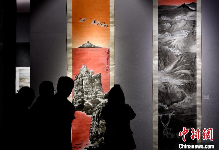 圖為觀眾正在拍攝展覽中的美術(shù)作品。李林 攝