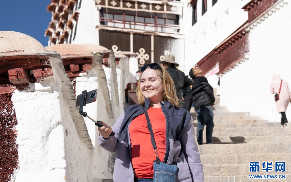 11月3日,游客在布達拉宮自拍。 新華社發(fā)(丁增尼達 攝)