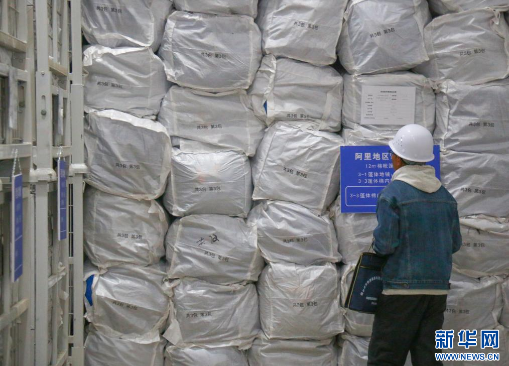 西藏阿里地區(qū)應(yīng)急救災(zāi)物資儲備庫一角。(11月5日攝)新華社記者 聶毅 攝