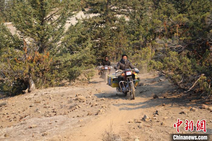 圖為村民騎著摩托車往山上運送物資。林芝市森林消防支隊供圖