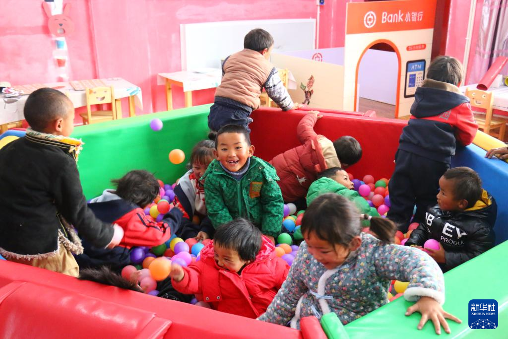 在距離阿里陜西實驗學校約50公里的噶爾縣扎西崗鄉(xiāng)幼兒園里,12名4至6歲的孩子在玻璃暖廊里搭積木、做游戲,外面的風雪和寒氣絲毫影響不了他們的熱情。