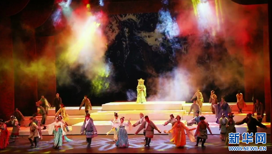 《金城公主》舞臺(tái)劇演出現(xiàn)場(chǎng)(11月15日攝)。新華網(wǎng) 殷小燕 攝