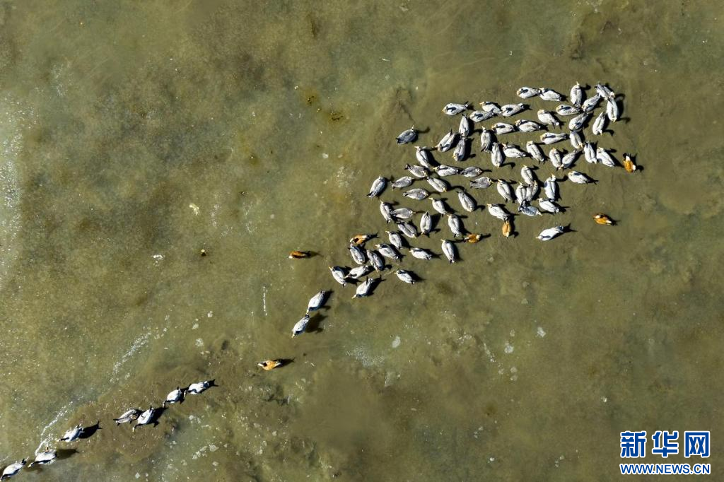11月17日,在哲古湖拍攝的鳥群(無(wú)人機(jī)照片)。 新華網(wǎng) 旦增努布 攝