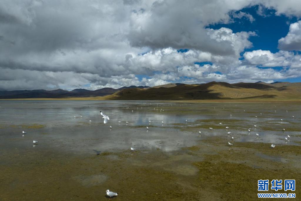11月17日,在哲古湖拍攝的鳥群(無(wú)人機(jī)照片)。新華網(wǎng) 旦增努布 攝