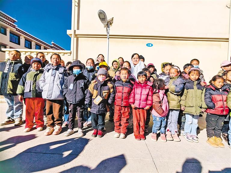 那曲市安多縣困難學(xué)生領(lǐng)取新外套。 本版圖片由 旦增達(dá)瓦 提供