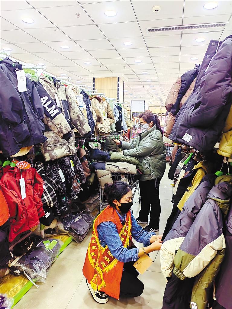 那曲市安多縣志愿者受旦增達(dá)瓦委托為困難學(xué)生購買新外套。