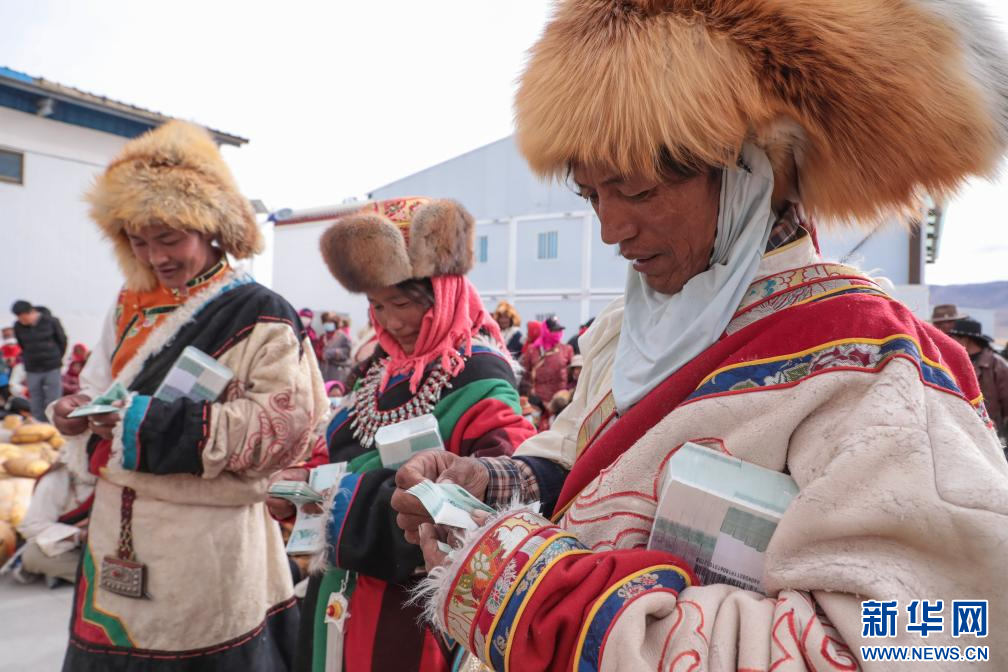 合作社為社員發(fā)放現(xiàn)金分紅(11月28日攝)。新華社發(fā)(索朗仁青 攝)