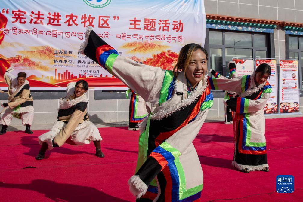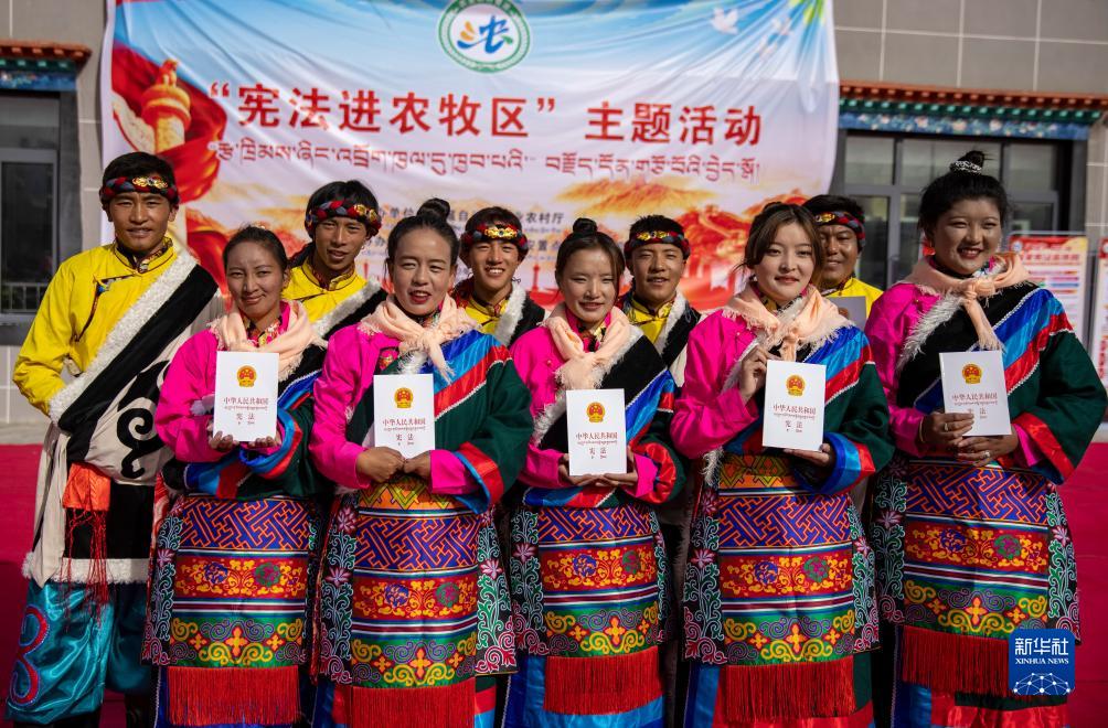 當(dāng)日,“憲法進(jìn)農(nóng)牧區(qū)”主題活動在西藏山南市貢嘎縣森布日生態(tài)搬遷安置點(diǎn)舉行,西藏自治區(qū)農(nóng)業(yè)農(nóng)村廳向當(dāng)?shù)剞r(nóng)牧民群眾贈送了《中華人民共和國憲法》及相關(guān)法律書籍。森布日位于雅魯藏布江北岸,海拔約3600米,聚居著來自那曲雙湖、尼瑪、安多等縣的高海拔生態(tài)搬遷移民。