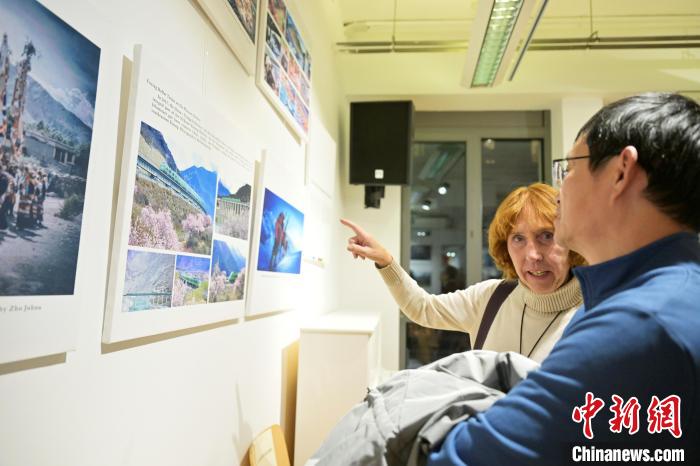 維也納商會(huì)市場(chǎng)部主席馬庫斯·漢茨(Markus Hanzl)參觀“和美西藏”攝影展。歐洲時(shí)報(bào)記者 周修怡 攝