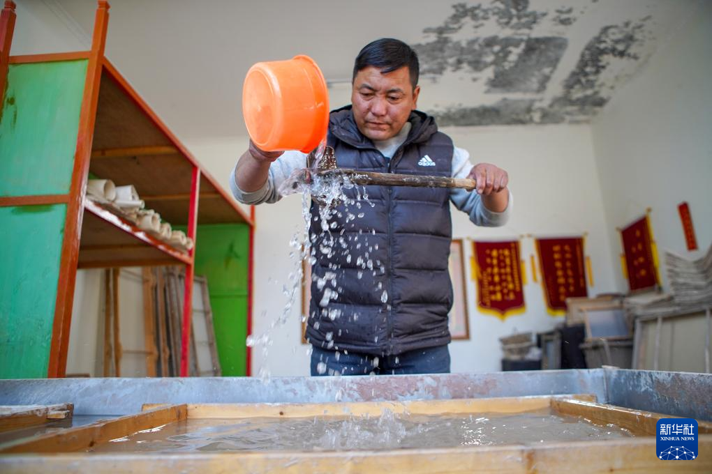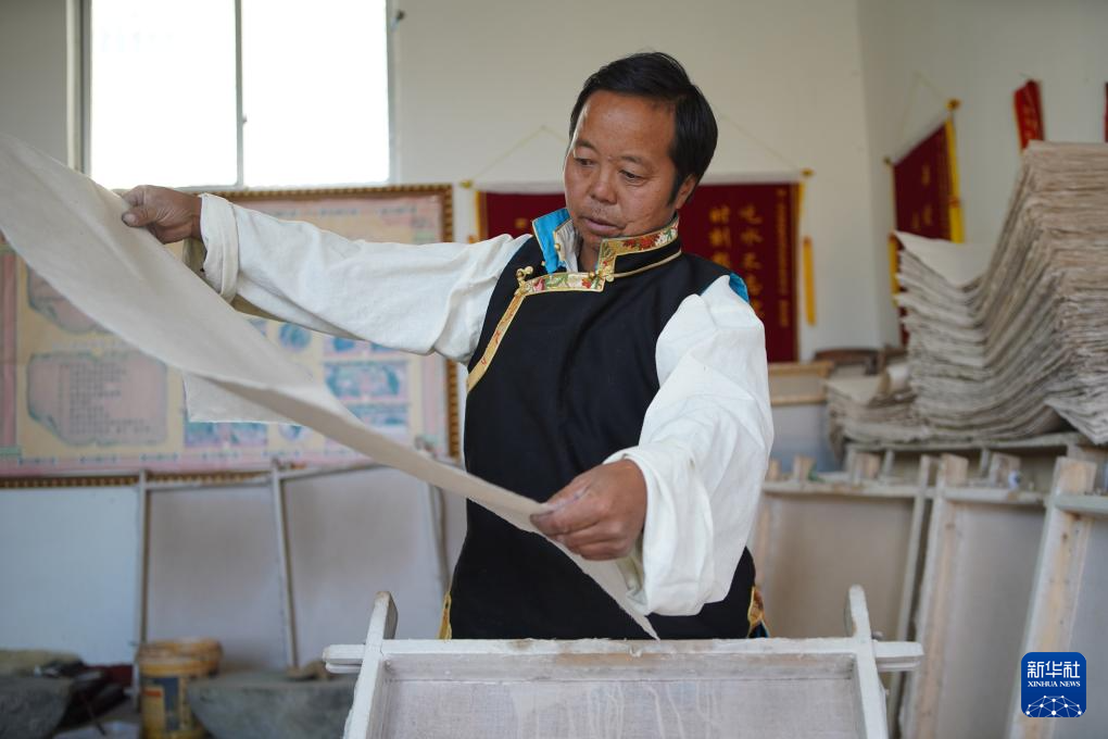 格桑旦增在檢查剛取出的藏紙的質量(12月5日攝)。新華社記者 邵澤東 攝