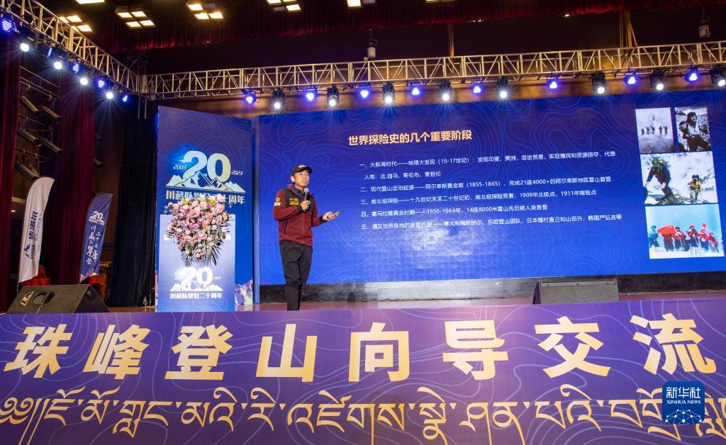當(dāng)日,以“致敬熱愛 圓夢巔峰”為主題的珠峰登山向?qū)Ы涣鞔髸叽ú馗呱较驅(qū)f(xié)作隊(duì)成立20周年慶典在拉薩舉行。