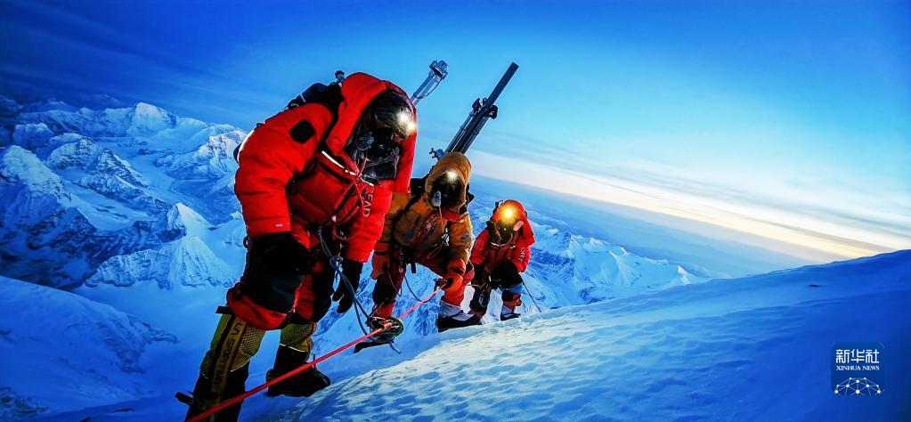 中國登山者在攀登珠峰(5月23日攝)。新華社發(fā)(川藏高山向?qū)f(xié)作隊(duì)供圖)