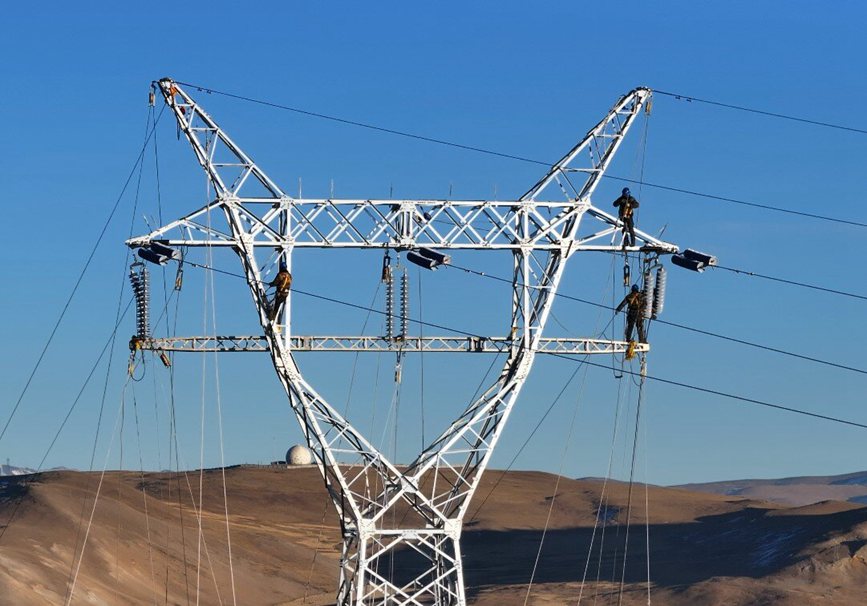“還有10米,5米,導線到位!”12月12日,18時,隨著對講機傳出的N5號塔位導線到位,標志著海拔4600米的西藏自治區(qū)那曲市色尼區(qū)國能100兆瓦風電110千伏送出工程全部貫通。